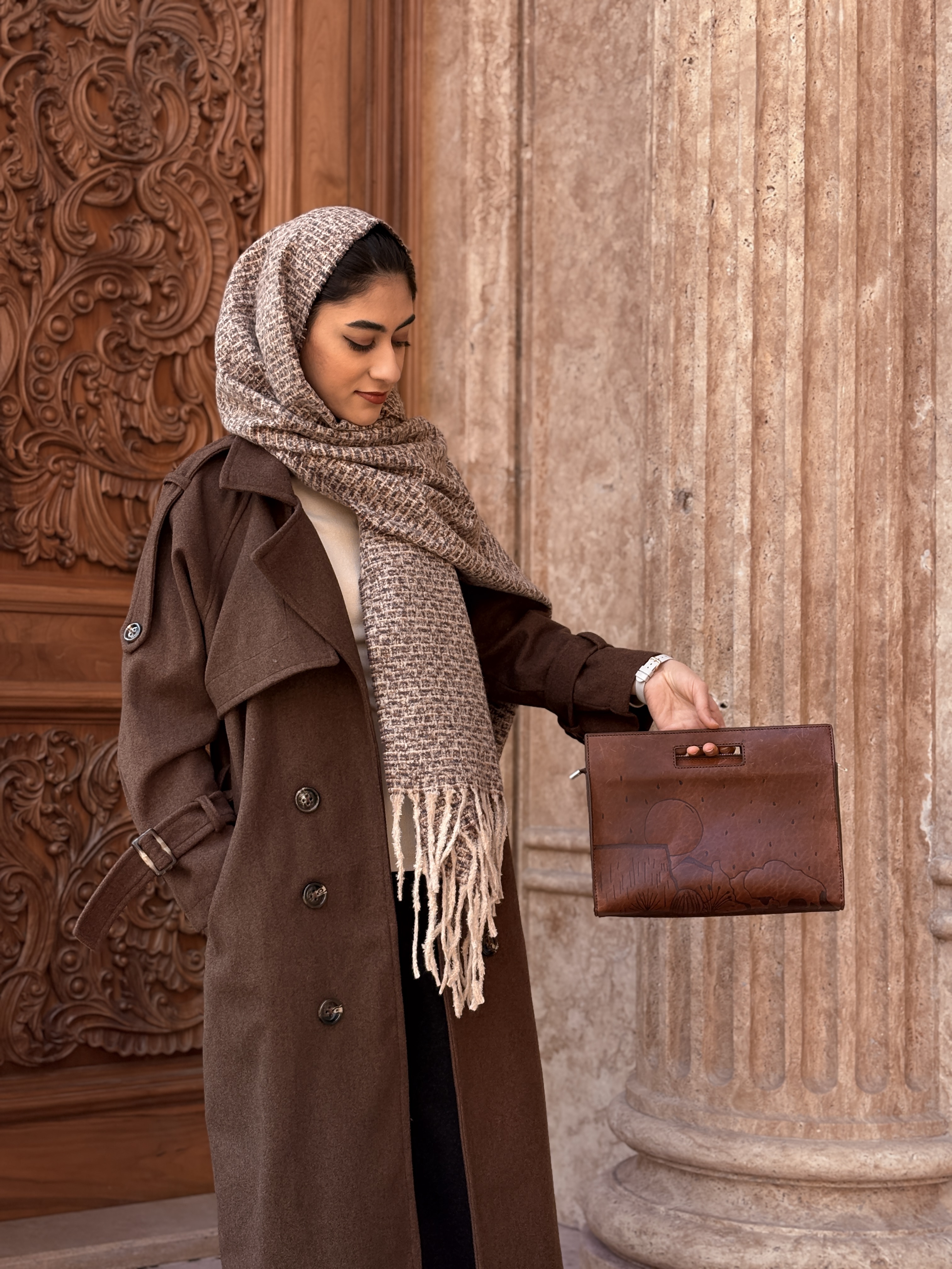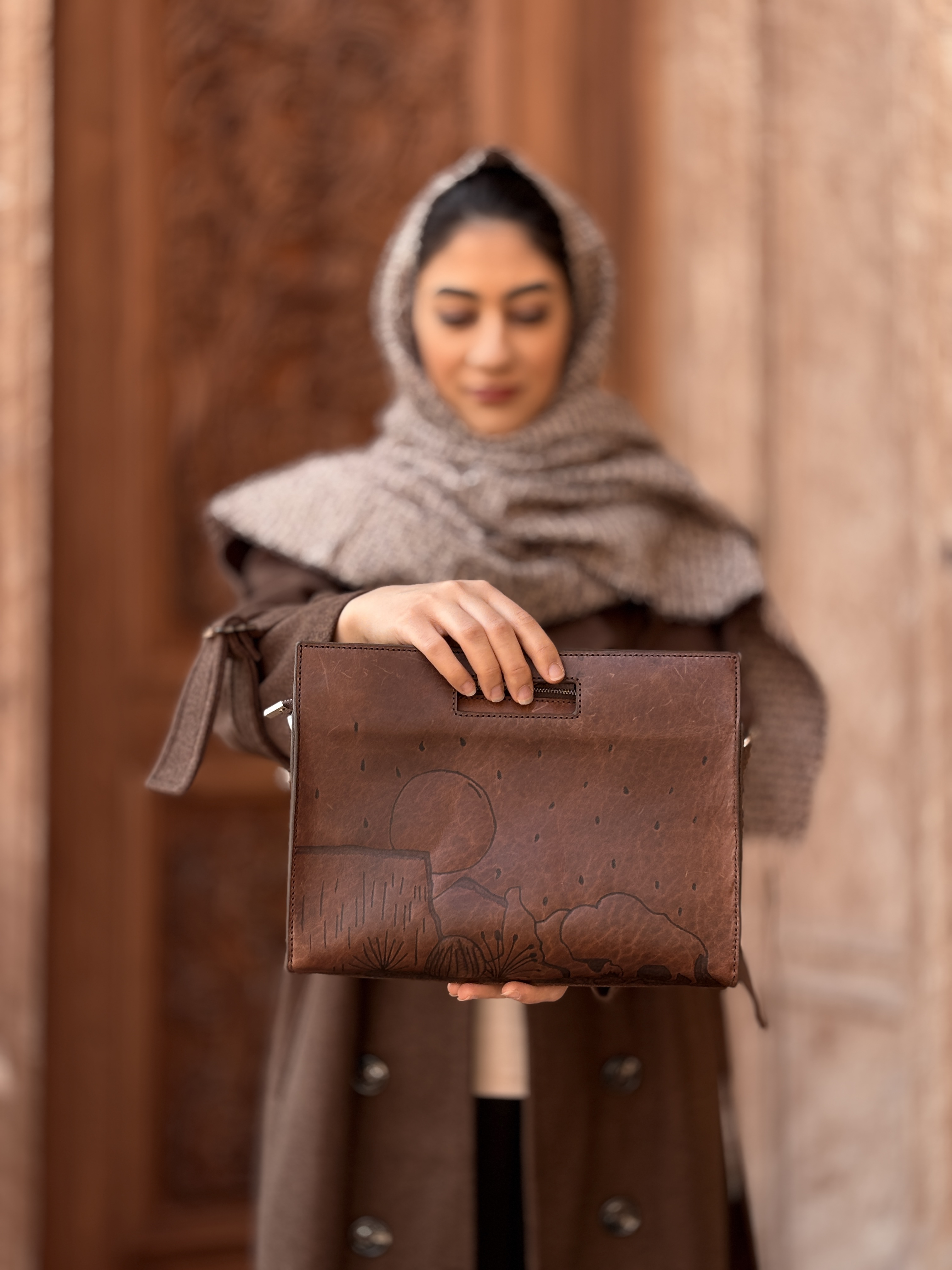 کیف دوشی زنانه سوختنگاری شده چرم طبیعی